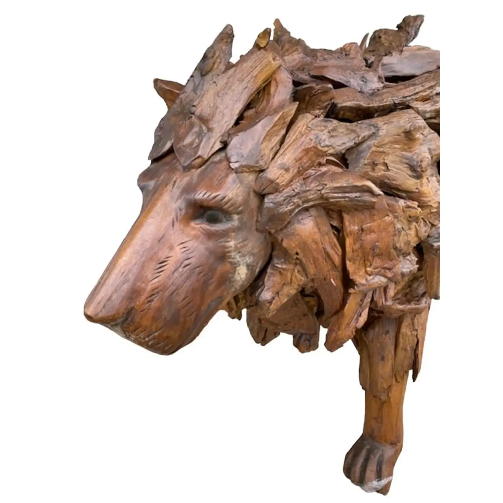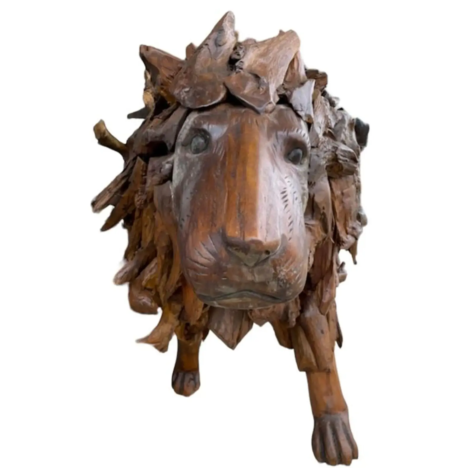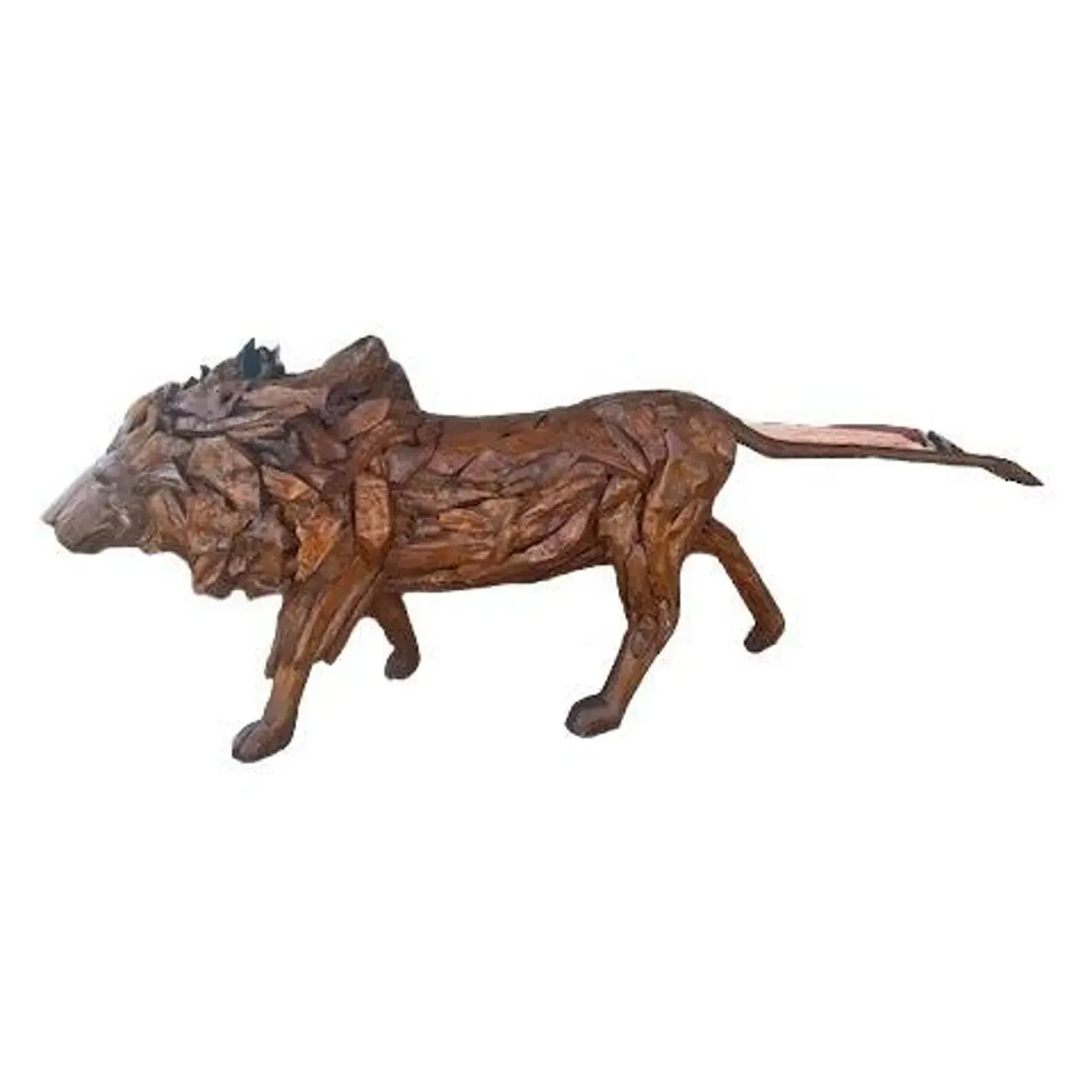 The Life-Size Walking Lion Statue is hand-carved from teak wood for grand garden or safari-style displays.