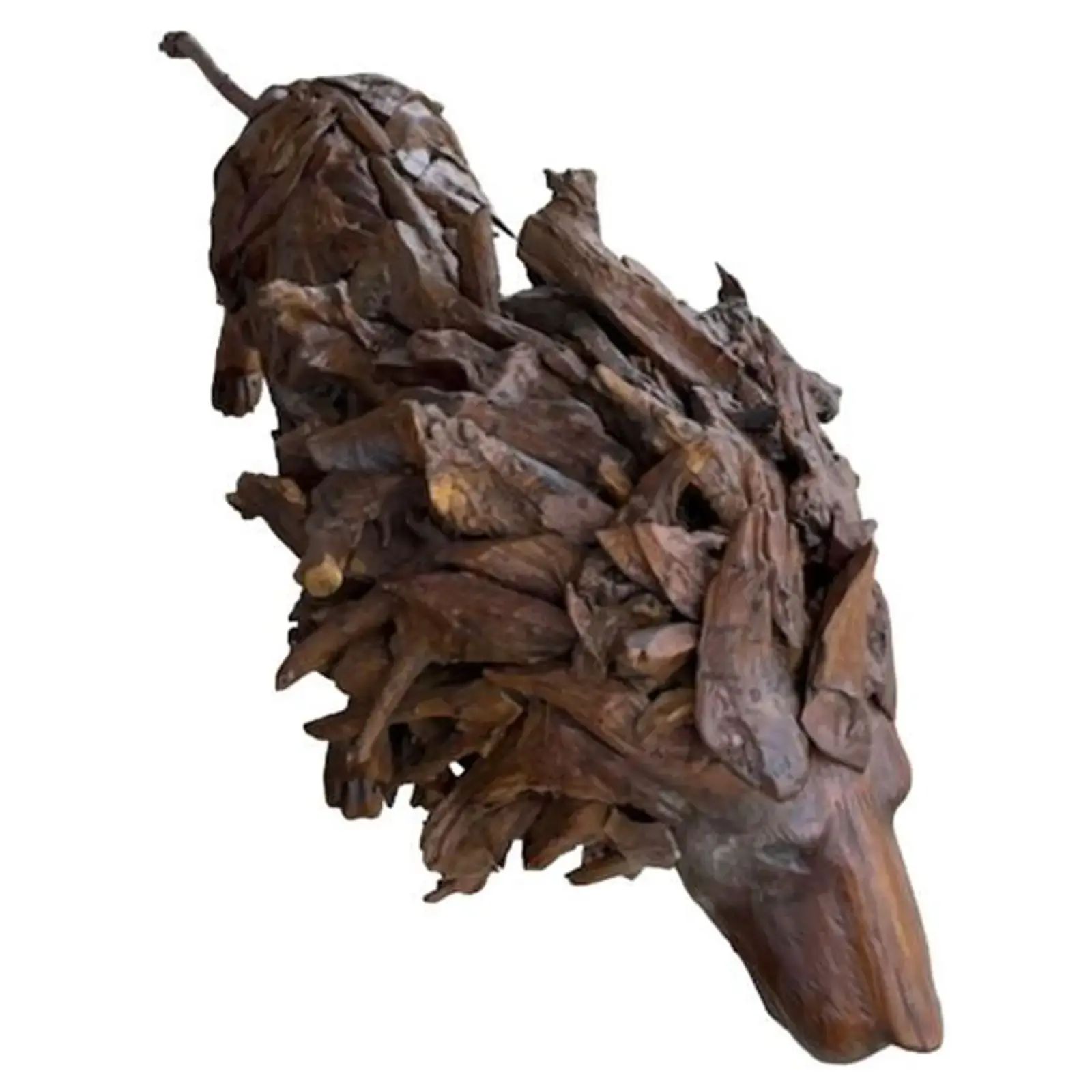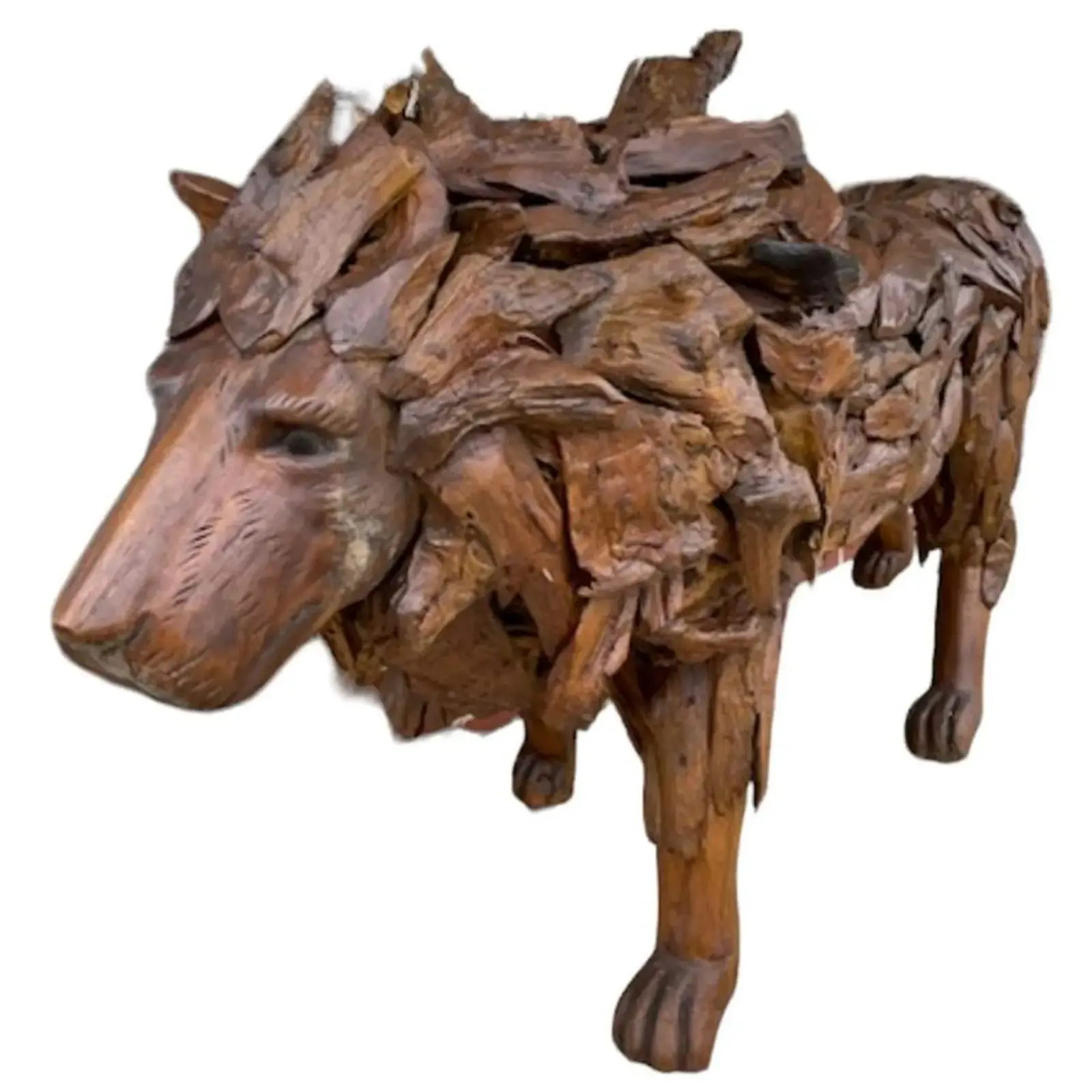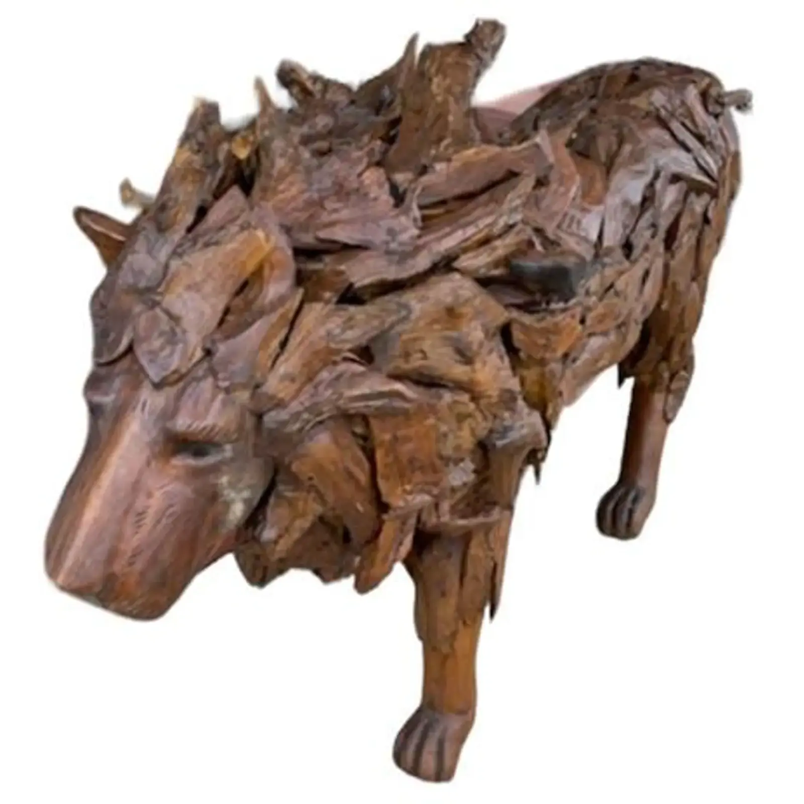 The Life-Size Walking Lion Statue is hand-carved from teak wood for grand garden or safari-style displays.