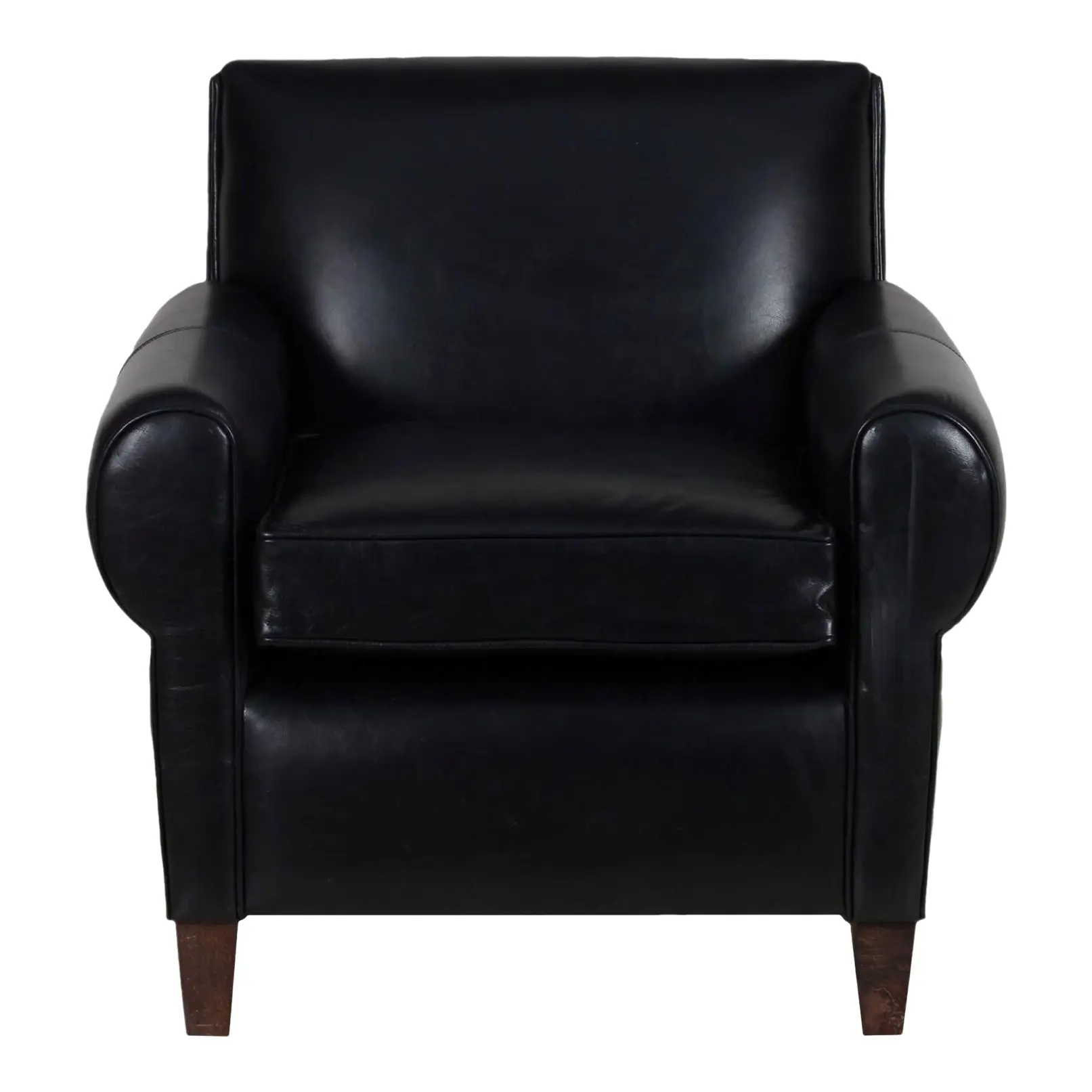 This classic armchair features genuine black leather upholstery and an oversized design, perfect as a club lounge accent chair for a living room or office.