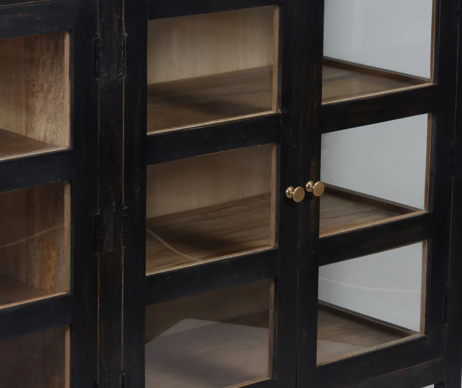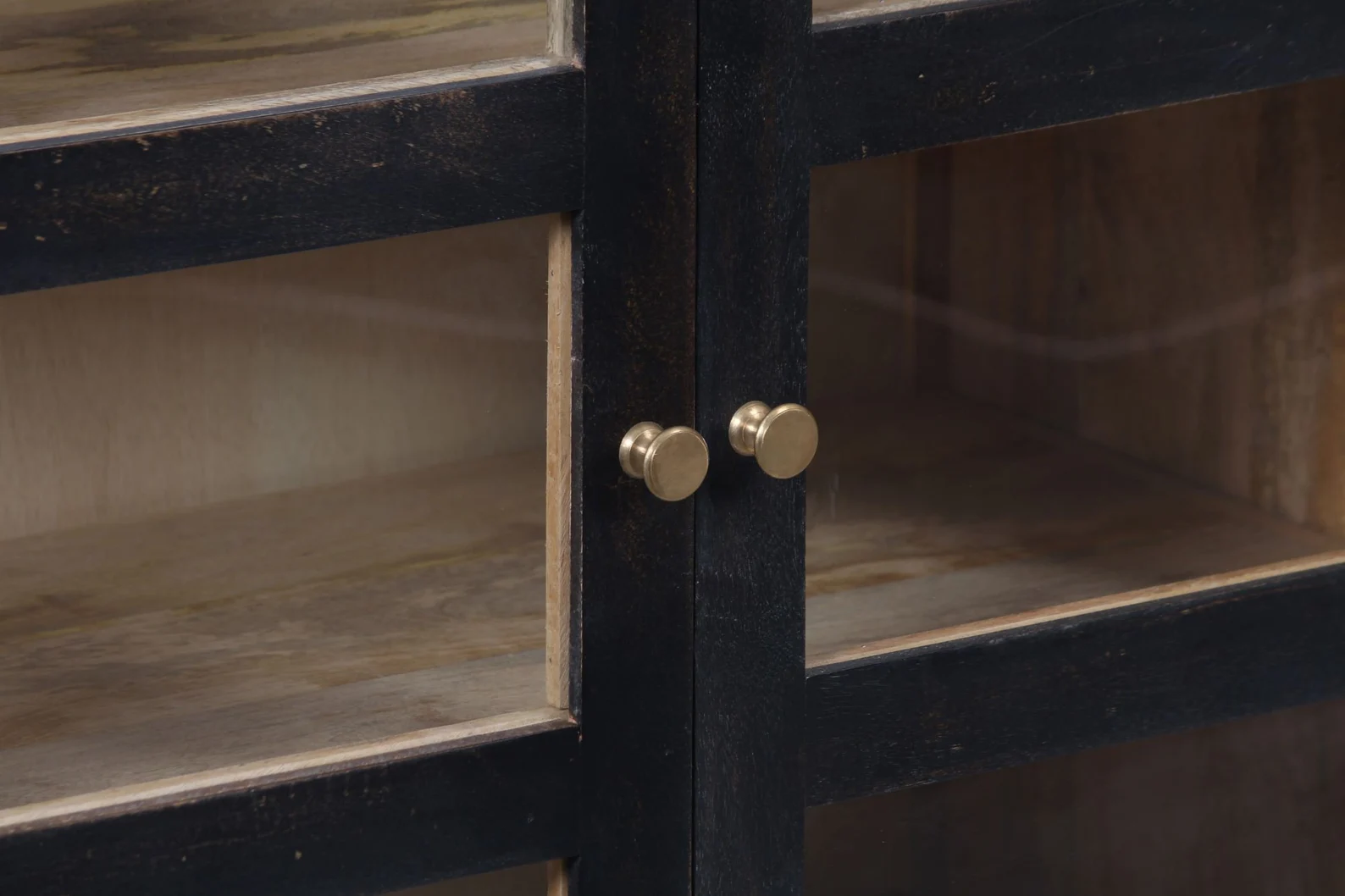 Contemporary Coastal Black Glass Door Display Cabinet