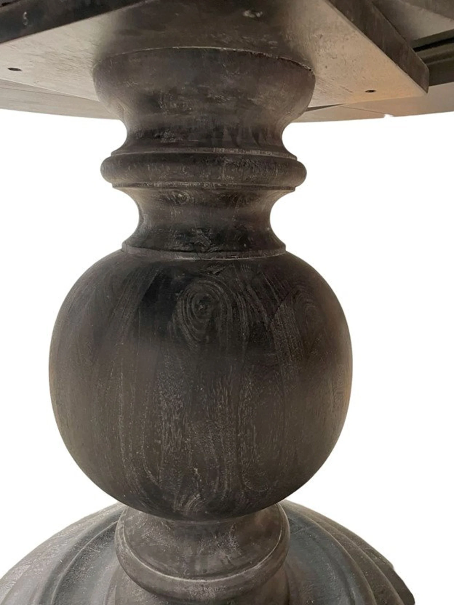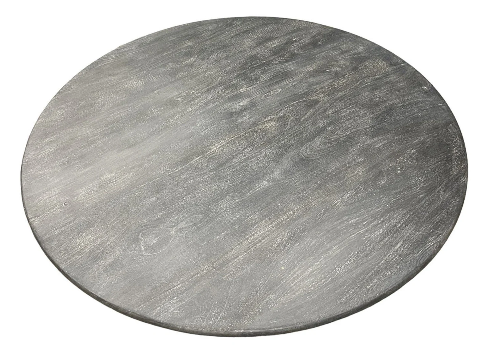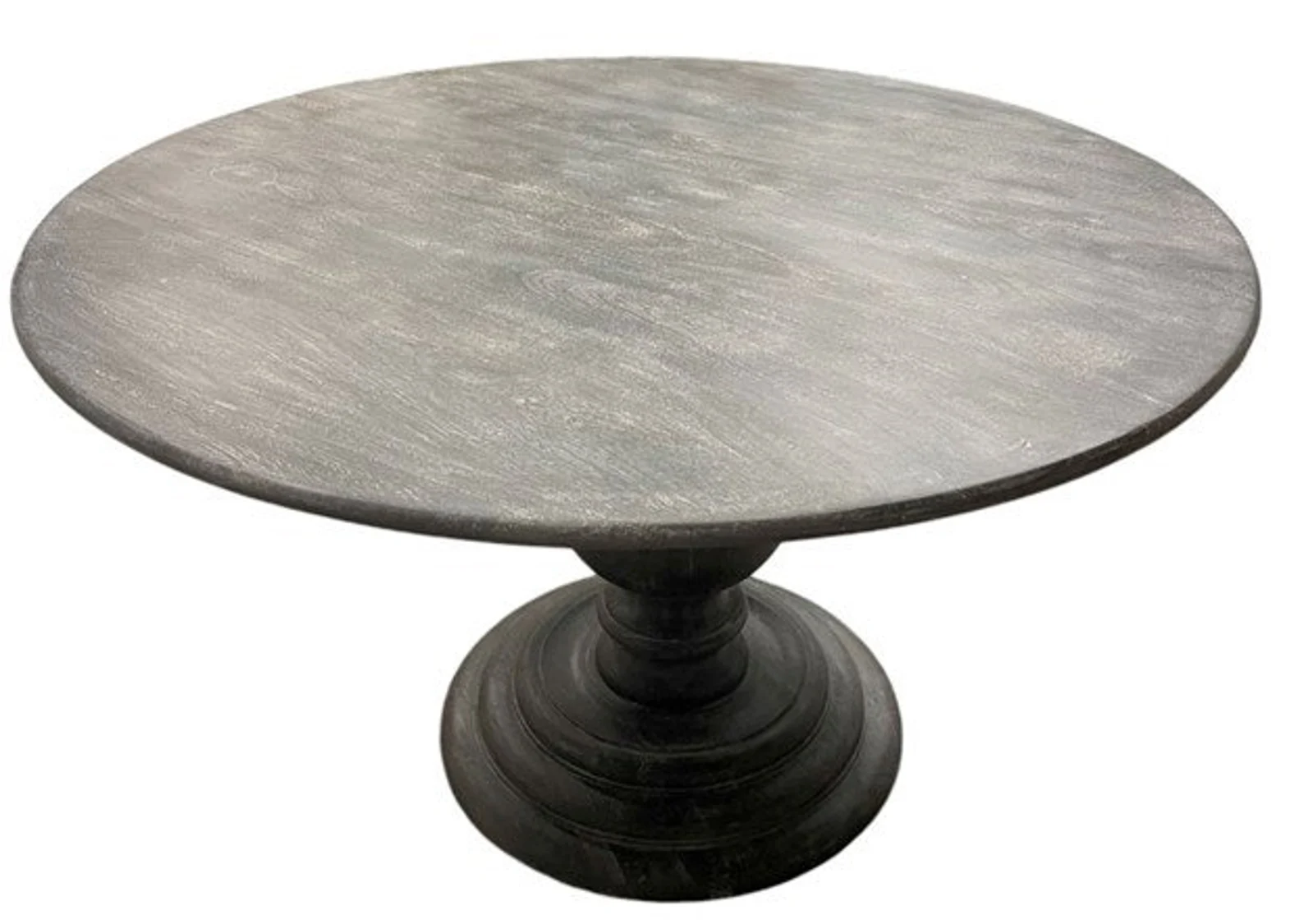 This 60-inch French Country Modern Farmhouse round dining table features a pedestal base and a weathered black gray finish, perfect for a kitchen or dining room, seating 6-8.