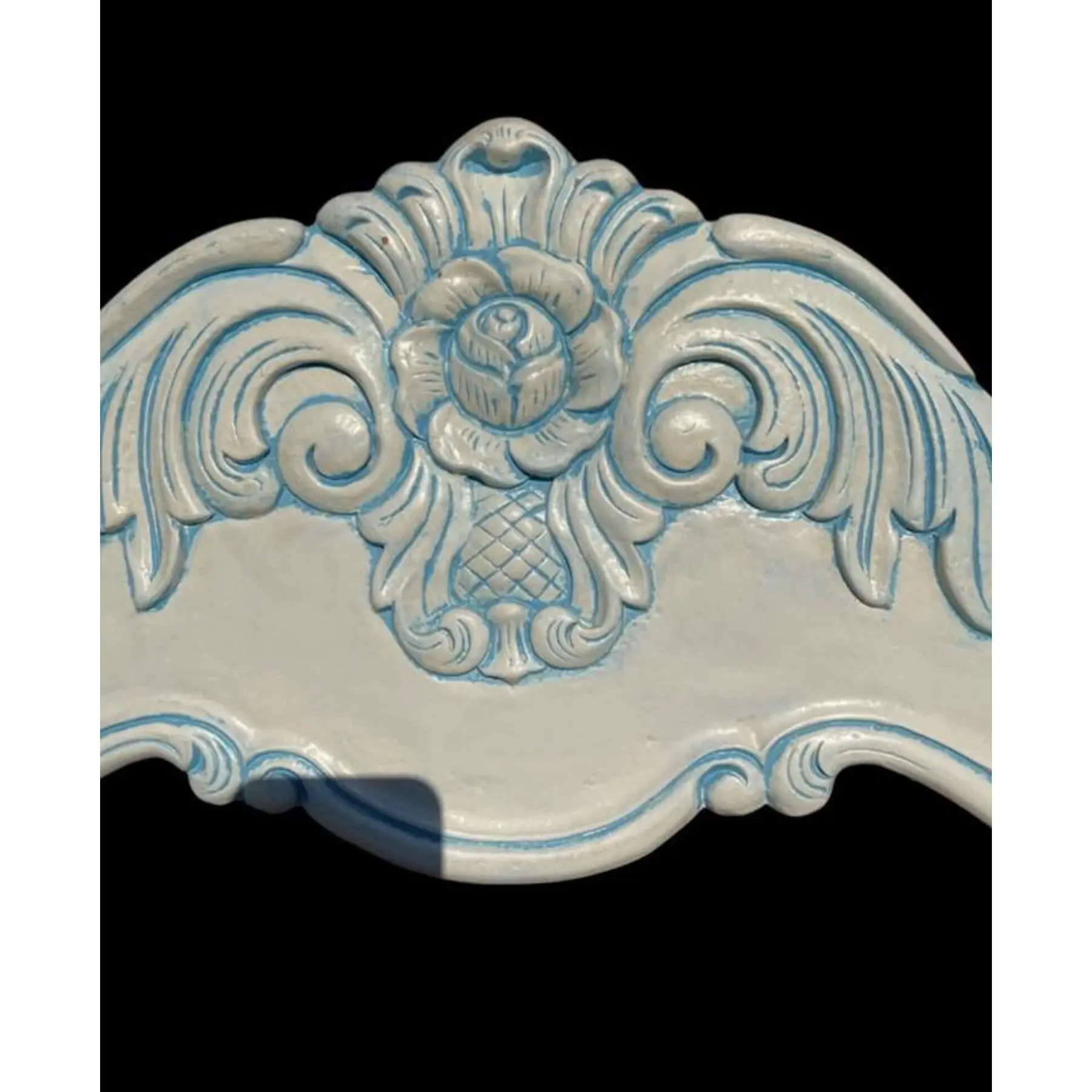 This French Country Vintage Style Old Paris French bedroom makeup vanity is crafted from solid wood, featuring a dressing table with a mirror and stool.