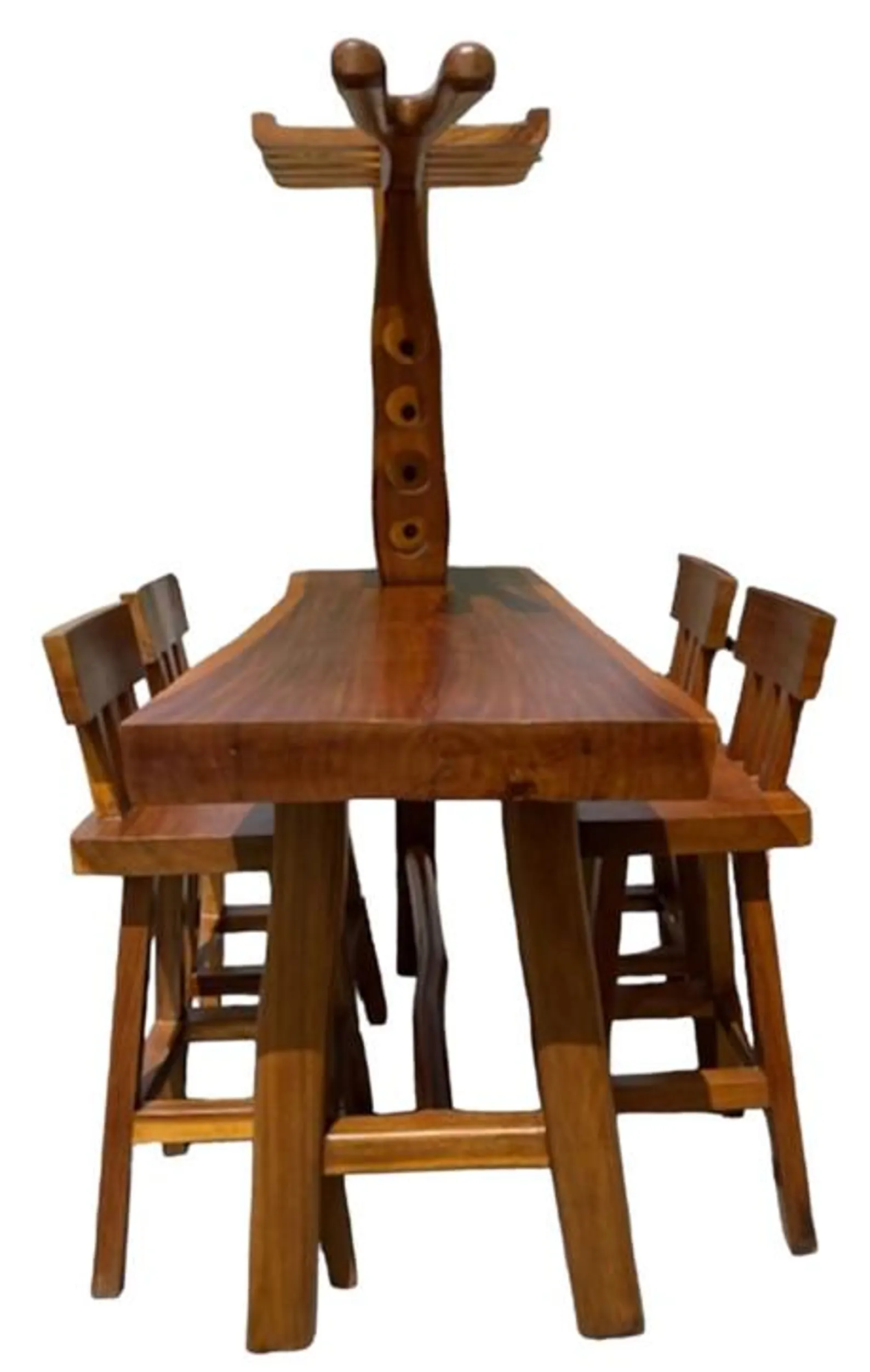 Table dimensions: 70″ L x 25″ W x 79″ H. Stool dimensions: 17″ L x 16″ W x 43″ H, with a seat height of 31″.