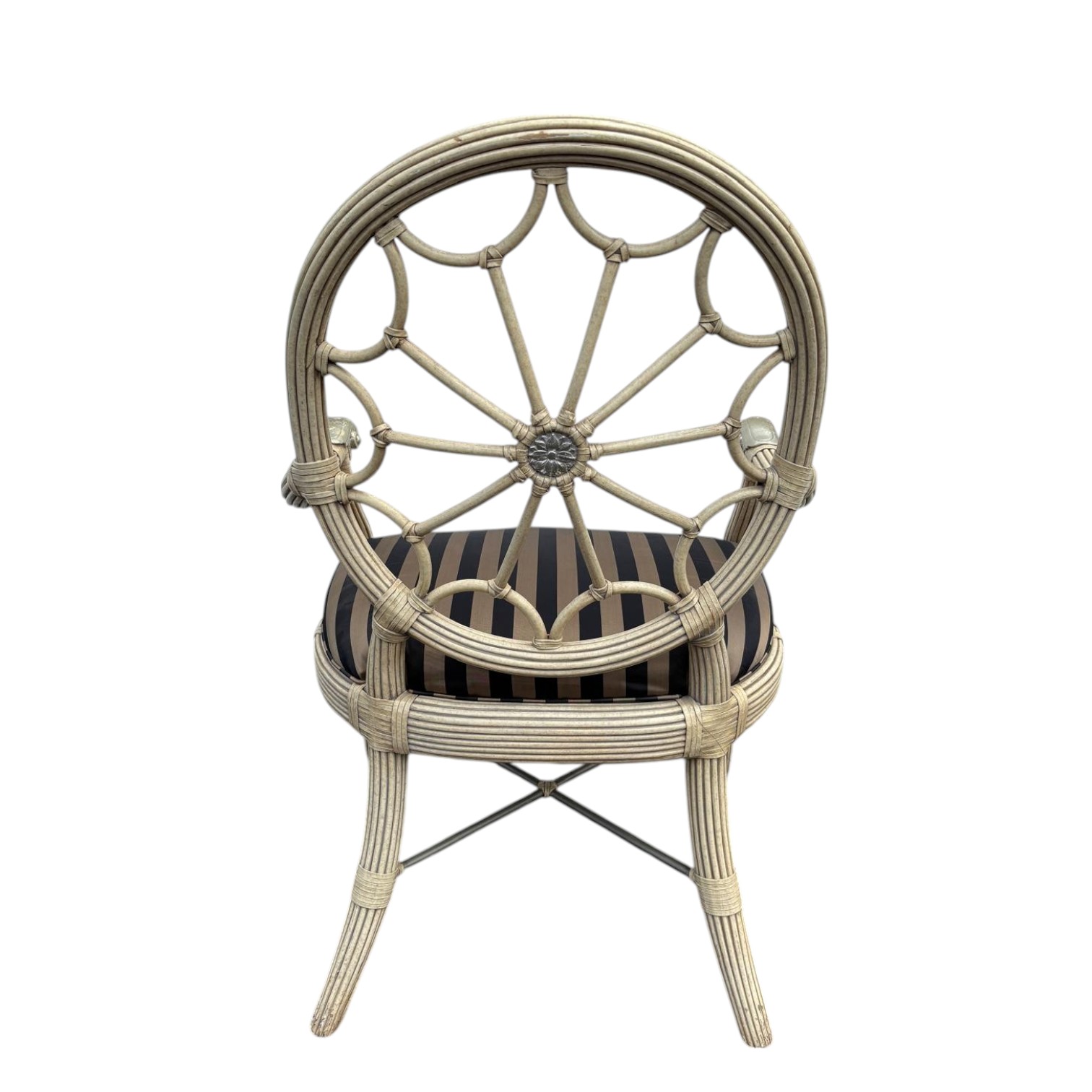 Gorgeous one of a kind Ferguson Copeland, Ltd. side chair. Black & tan custom upholstered seat with a reeded base. There are some minor stains on the upholstery from use.