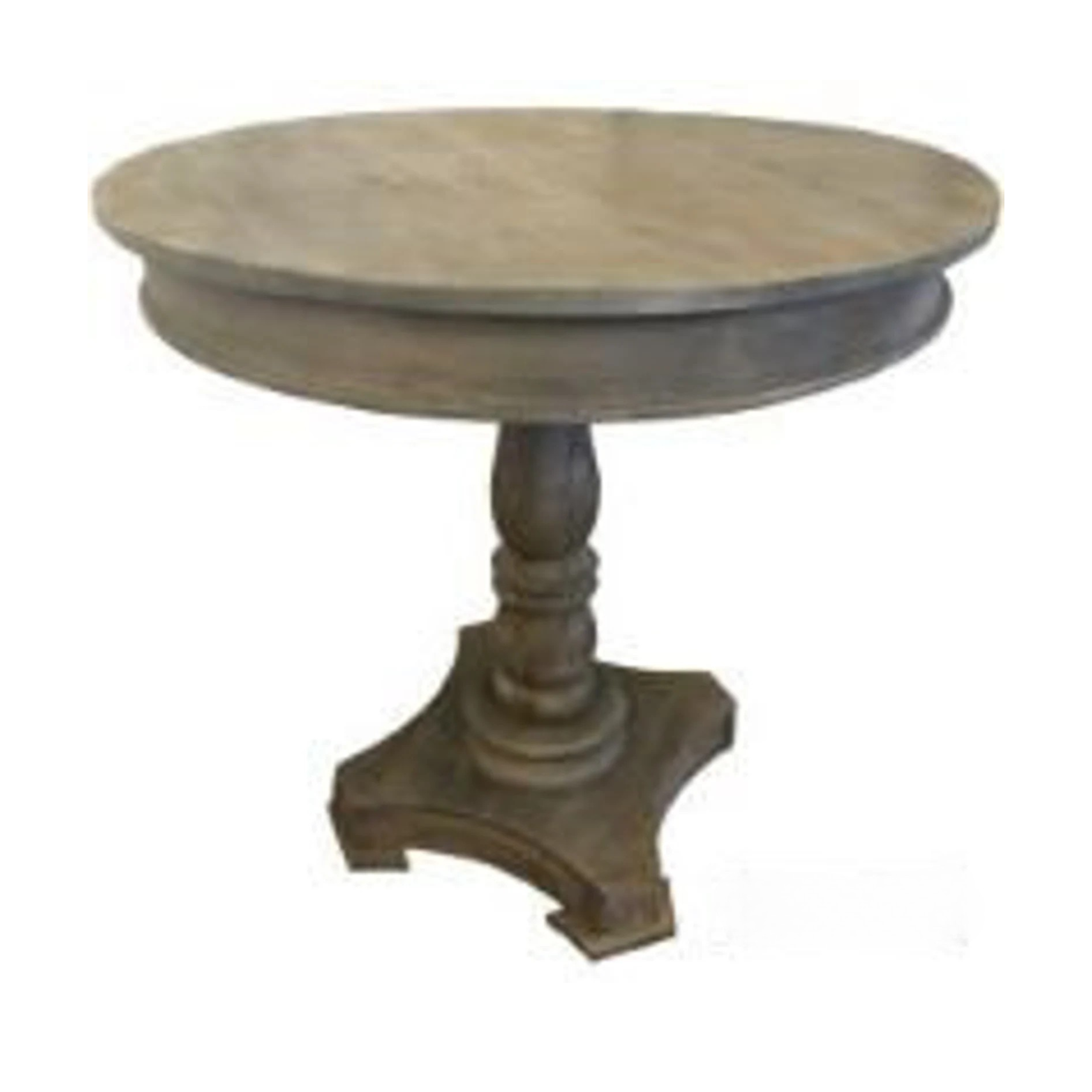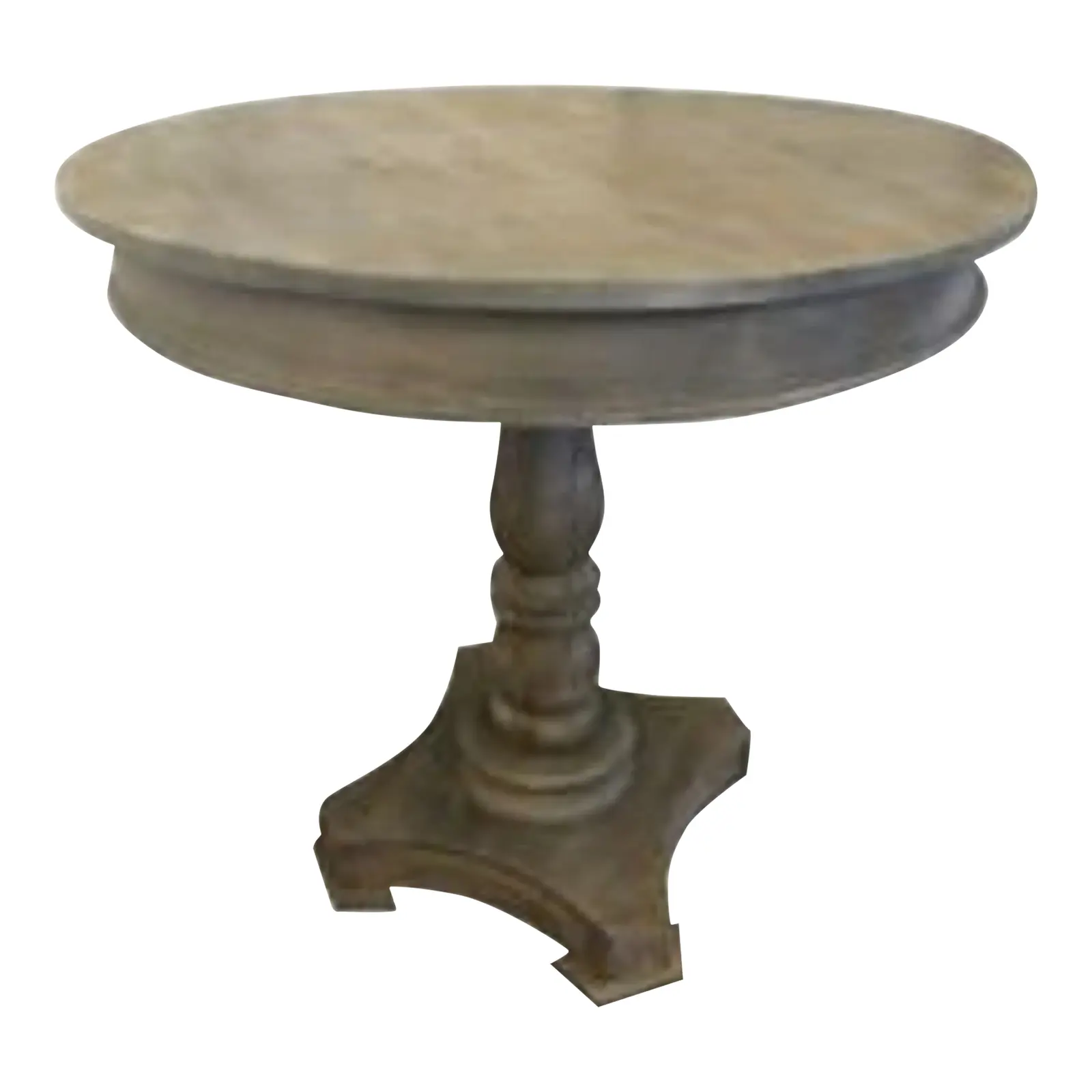 This rustic round parlor lamp table is crafted from solid wood with a chunky base, perfect as an accent table.