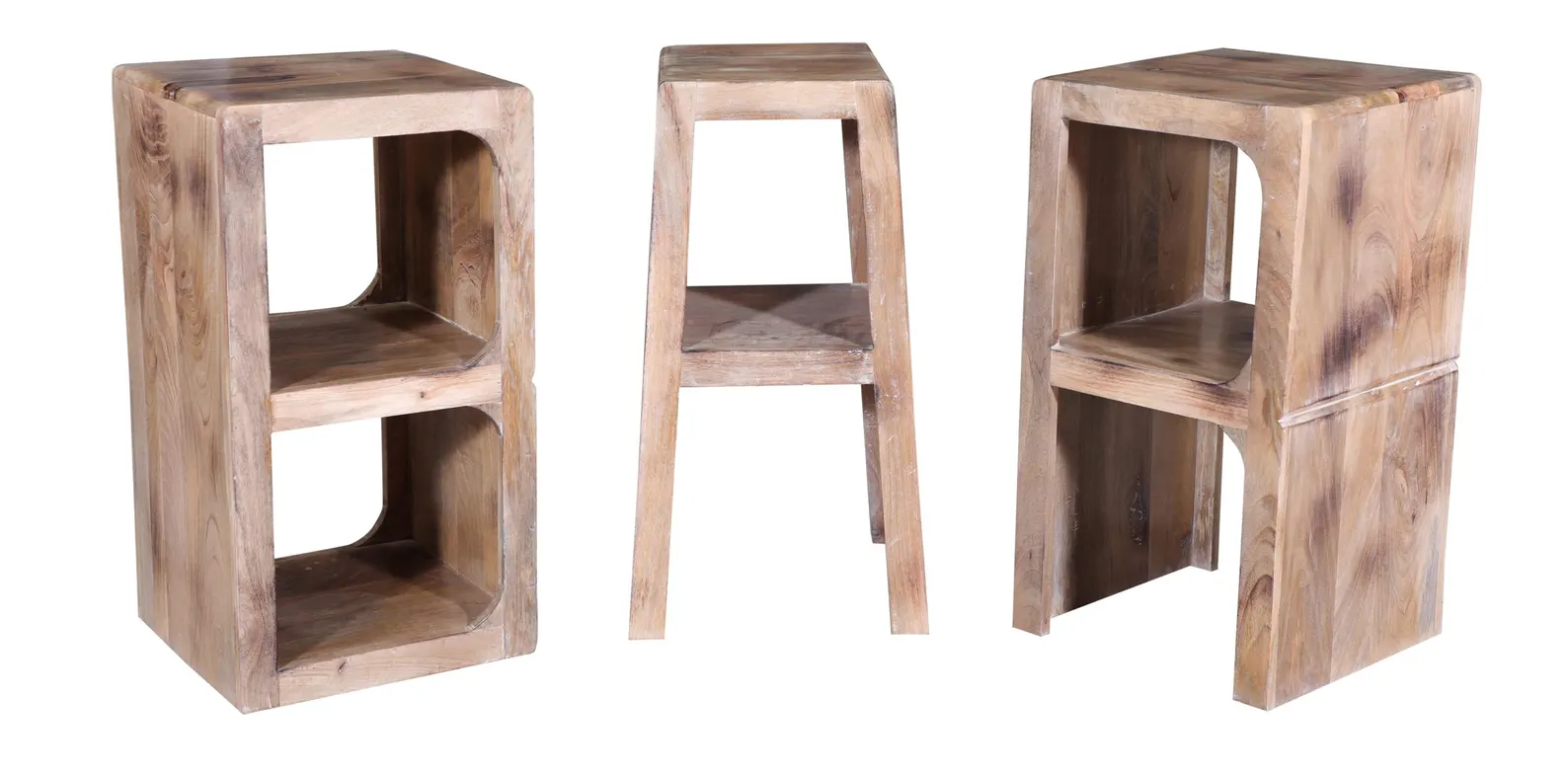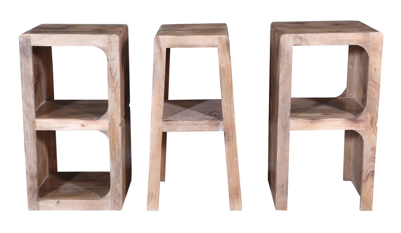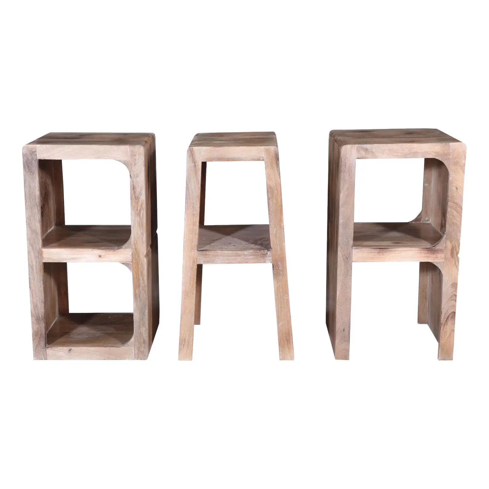 This Coastal Accent Table set includes three novelty BAR counter stools, crafted from solid mango wood with a natural driftwood finish. These very sturdy stools are 30″ tall.