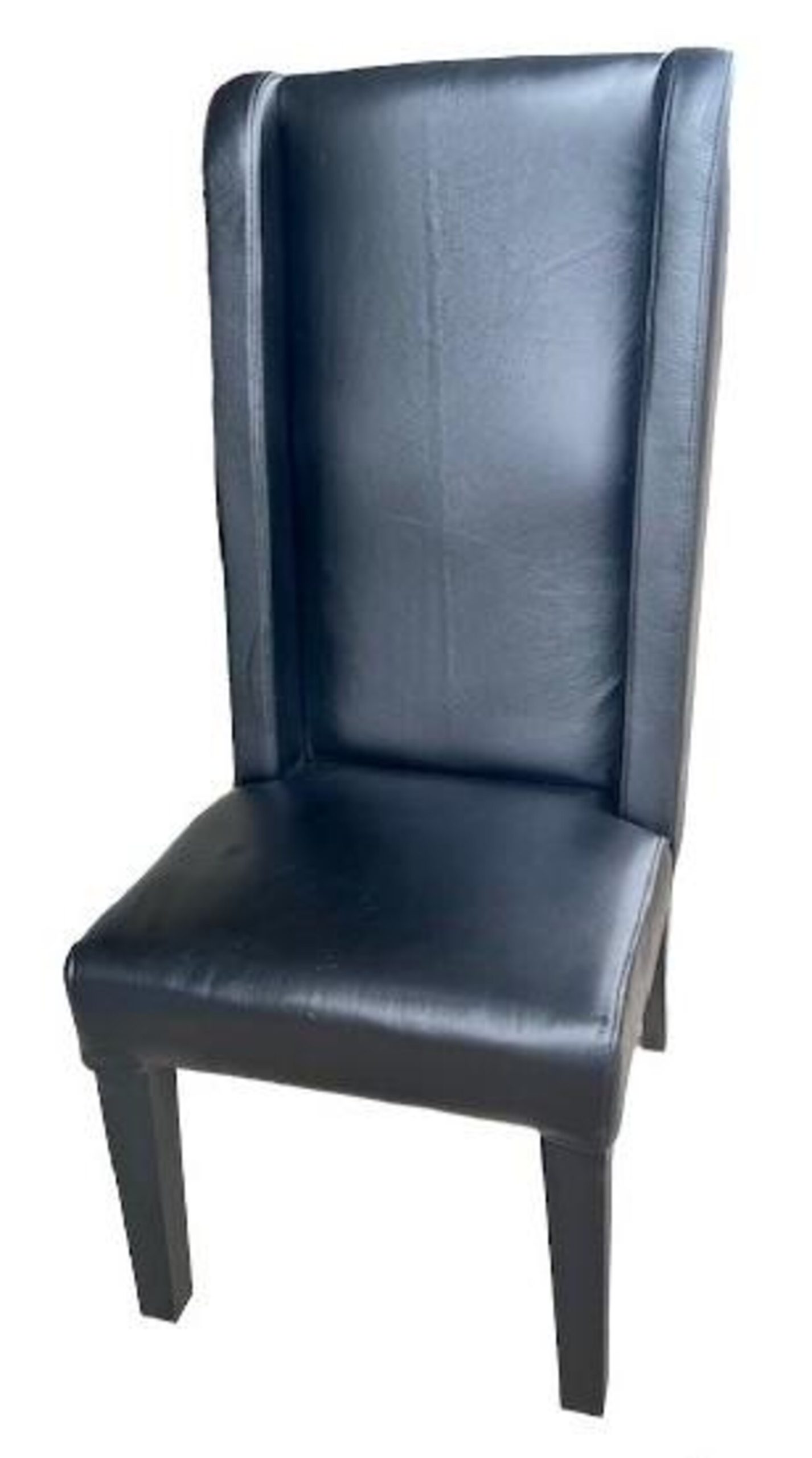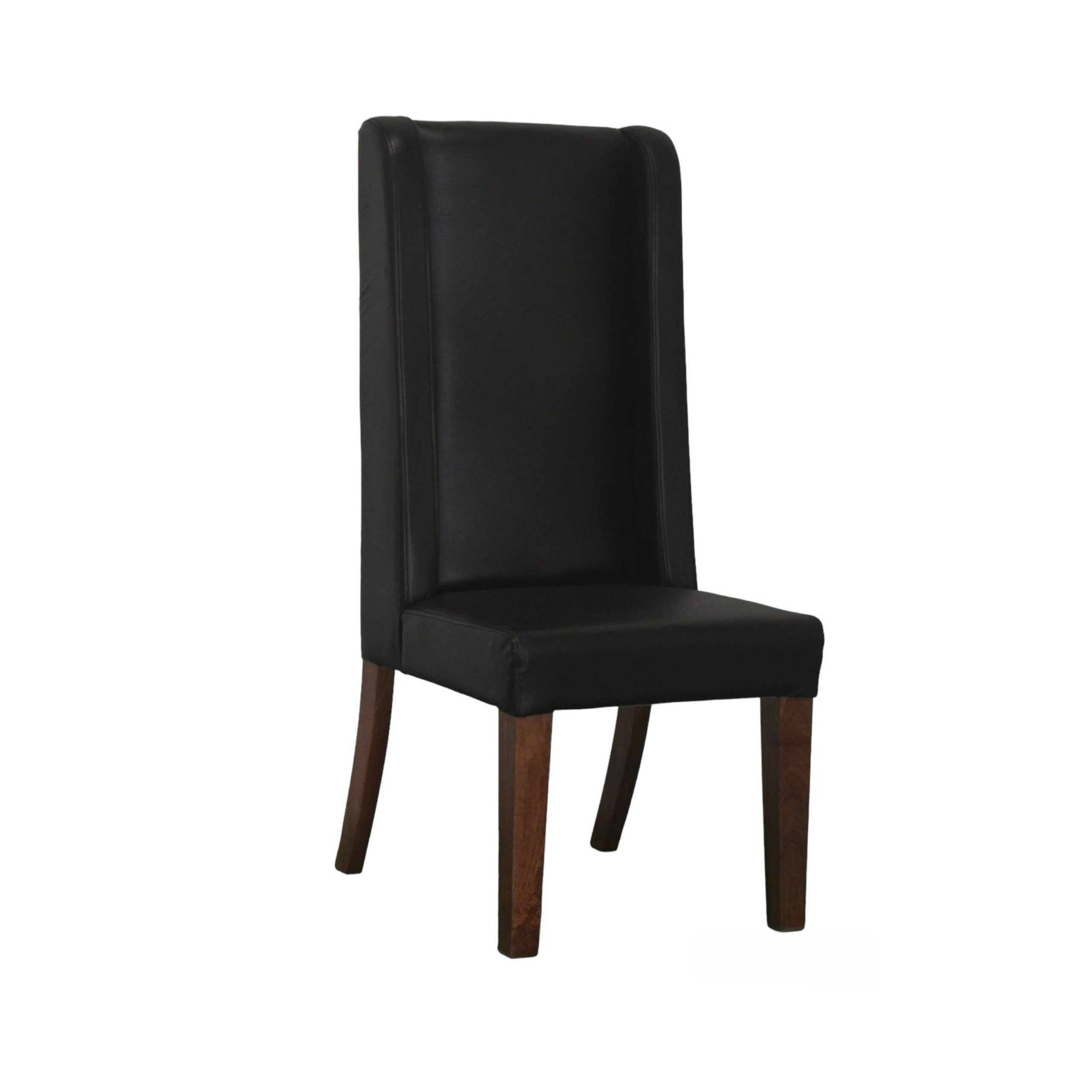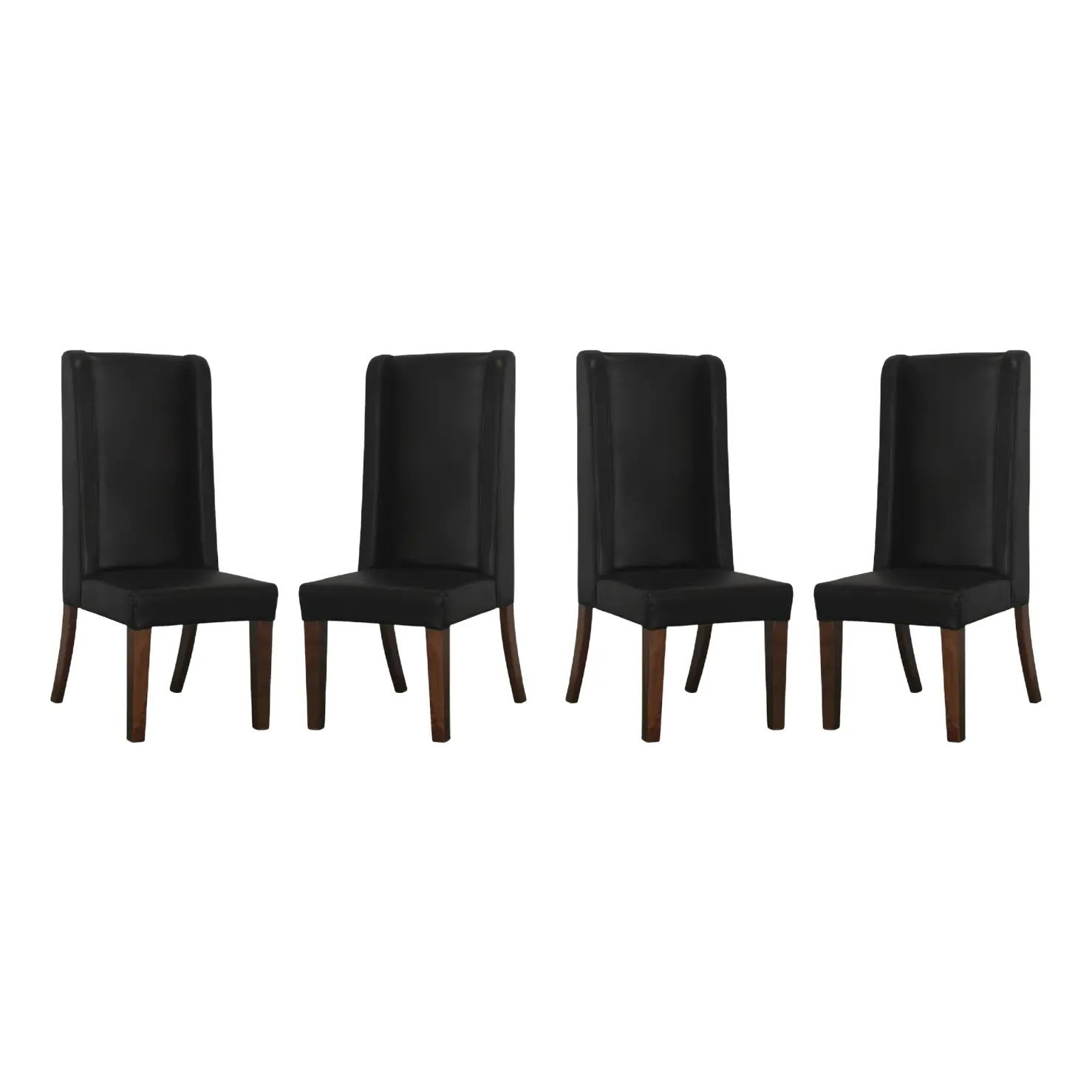 This matching set of four black genuine leather upholstered traditional high-back dining chairs features a solid mango wood frame, perfect as accent chairs.