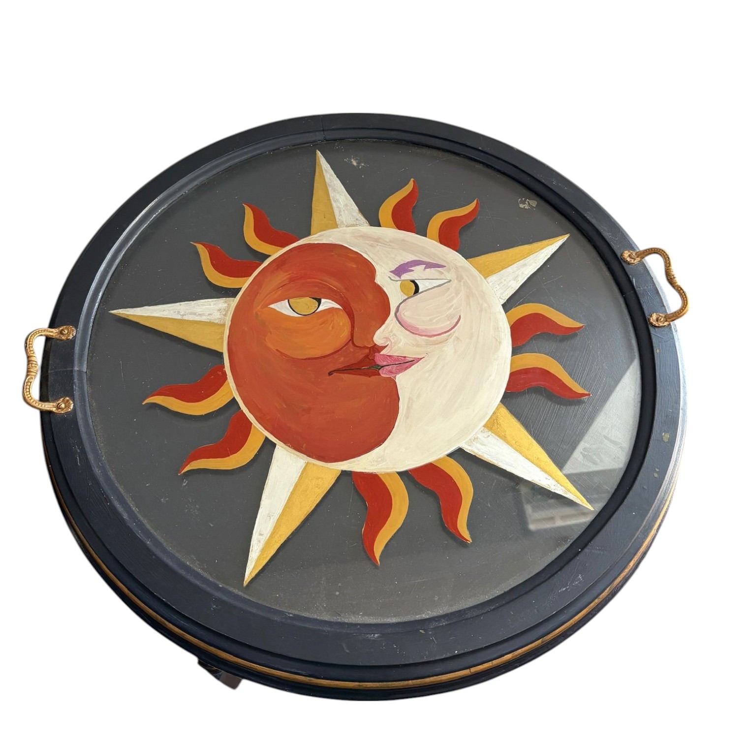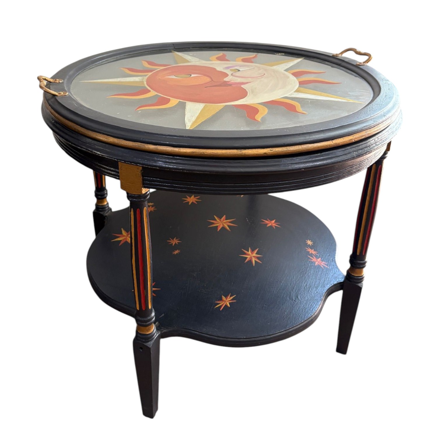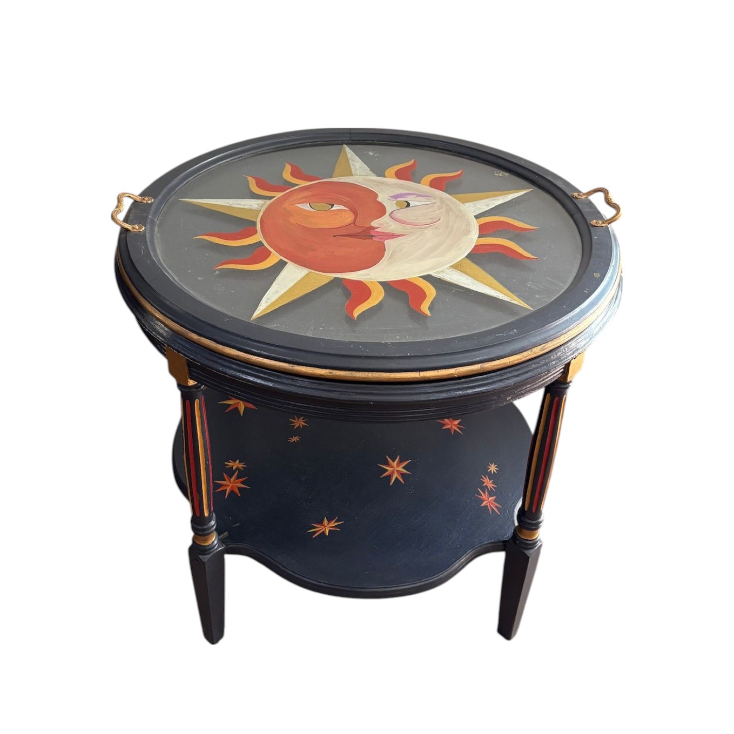 Hand painted vintage side table with a sun and stars. One of a kind very special piece.